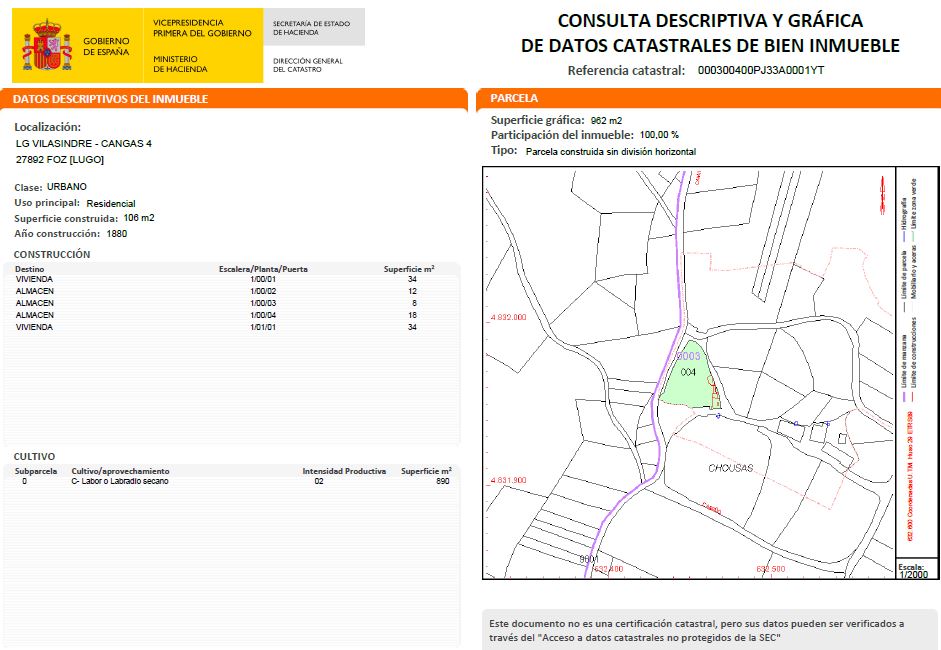 Solar en Foz (Lugo). Ubicado en la zona de Cangas, próximo a las poblaciones de Burela y Foz, entorno tranquilo de casas y chalet unifamiliares. Cuenta con una superficie de 1.453m2 y una construcción en ruinas de 106m2.