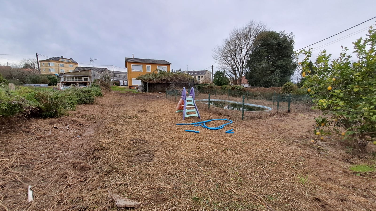 La finca, completamente rectangular y totalmente cerrada, tiene una superficie aproximada de 1.078 m². Dispone de la posibilidad de habilitar un acceso por la parte trasera, lo que añade comodidad y funcionalidad. En la parcela se encuentra una construcción auxiliar destinada actualmente a almacén, con potencial para acondicionarse como garaje u otros usos. Además, la propiedad incluye una piscina.